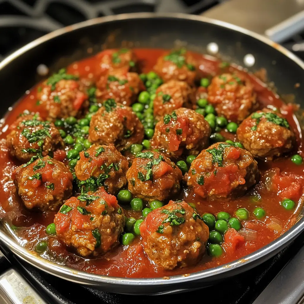 Ce qui me plaît dans cette recette, c’est sa simplicité. Elle ne demande que quelques ingrédients basiques, mais le résultat est toujours incroyablement savoureux. Les boulettes de bœuf sont tendres, parfumées d’herbes et d’ail, et elles mijotent doucement dans une sauce à base de tomates et de petits pois. Chaque bouchée est un pur bonheur, à la fois douce, épicée et réconfortante.