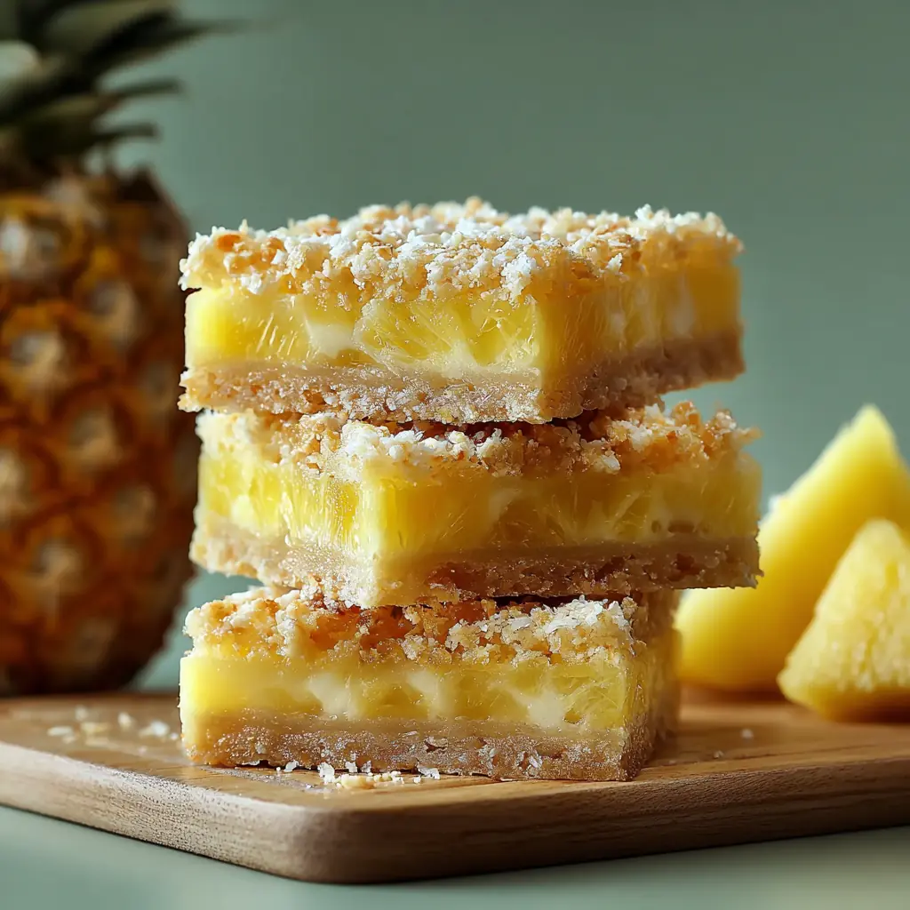 Ces carrés d’ananas croustillants se dégustent aussi bien tièdes que froids, et leur texture fondante alliée à une base sablée en fait un dessert incontournable.