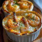 Comme les crevettes sont déjà saisies avant, elles finissent de cuire doucement dans la sauce. Ainsi, elles gardent une chair ferme et savoureuse. Surveillez l’aspect : lorsque la chapelure dore légèrement et que la sauce frémit, vos cassolettes sont prêtes.