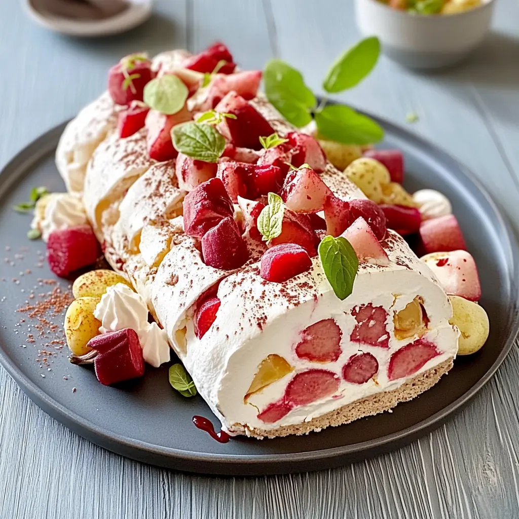 Pavlova roulée rhubarbe mascarpone
