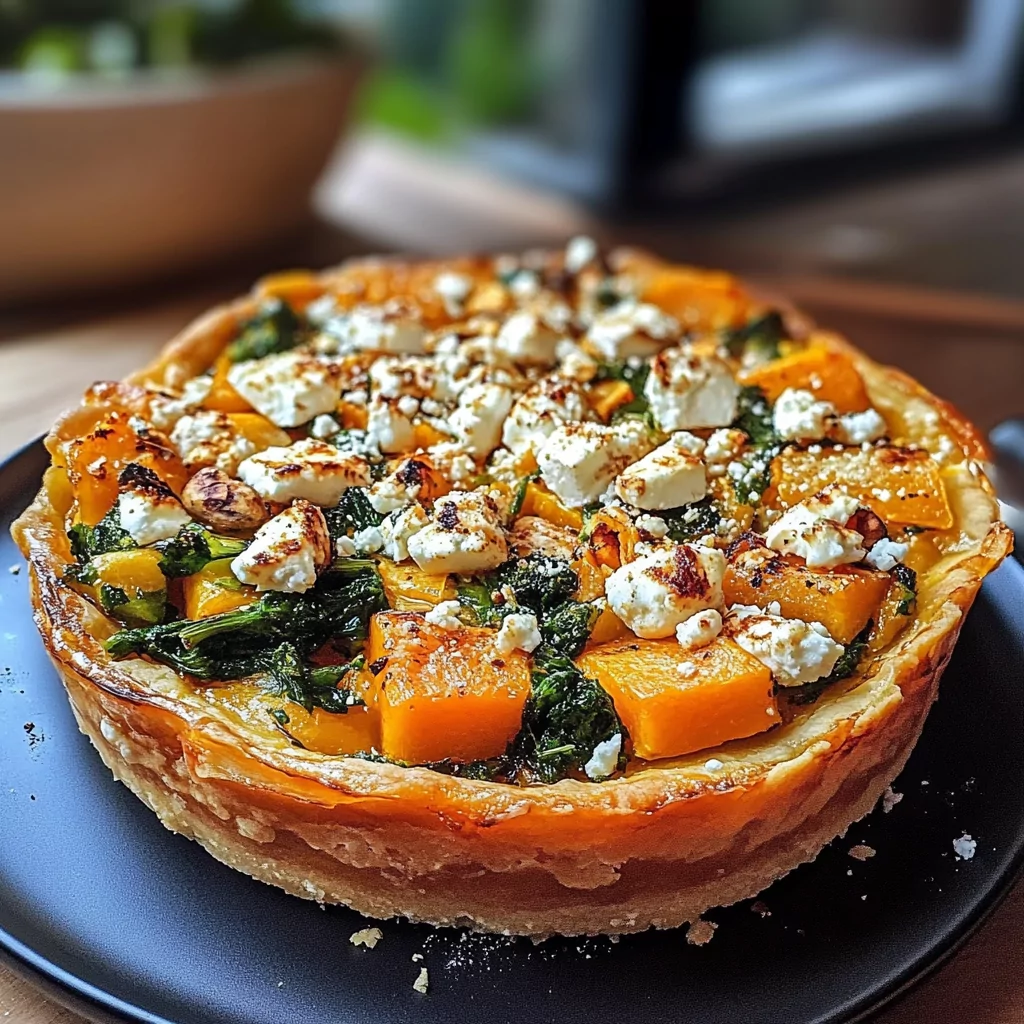 Tarte Butternut, Épinards, Feta et Amandes Grillées