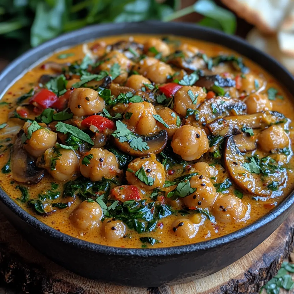 Curry de Champignons, Épinards et Pois Chiches – Sauce Coco et Citron