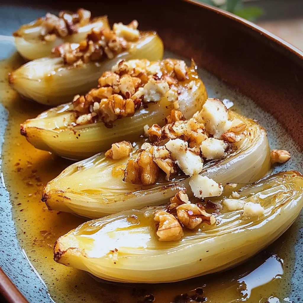 Endives Braisées au Miel et Vinaigre de Cidre, Roquefort Émietté et Noix