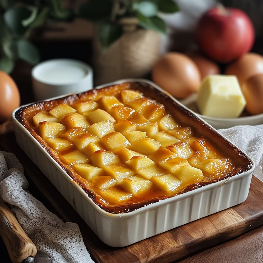 Je suis ravi de vous présenter une recette réconfortante et délicieuse qui allie la douceur des pommes et la richesse d’un flan crémeux : le flan aux pommes. Ce dessert simple mais raffiné est parfait pour toutes les occasions, que ce soit pour un goûter entre amis ou un dessert après un dîner en famille. La cuisson des pommes dans du beurre et du sucre leur donne une texture fondante, tandis que le flan au lait et à la farine crée une base douce et légère, qui se marie parfaitement avec les fruits.