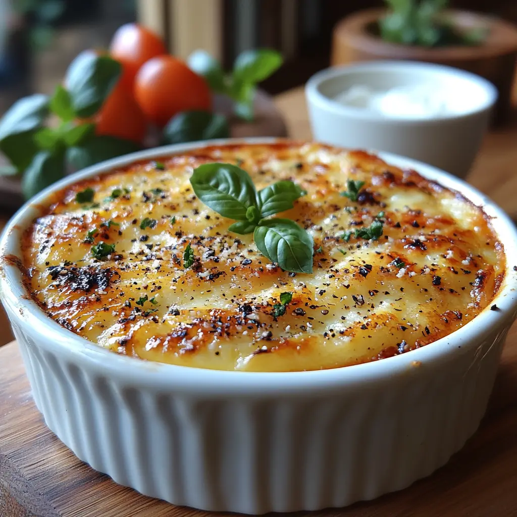 Servir : Sortez du four et laissez refroidir légèrement. Servez chaud ou tiède, garni de basilic frais pour encore plus de saveur.