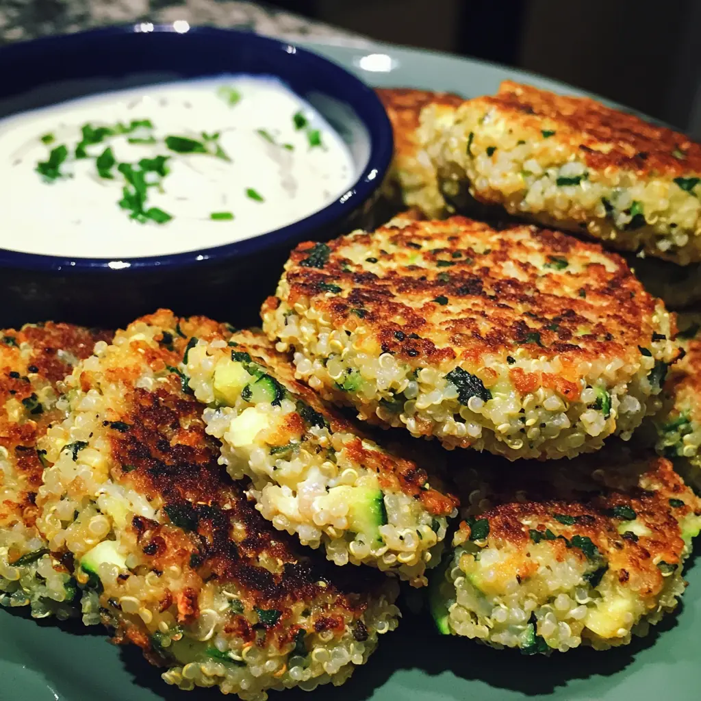 Galettes de Quinoa, Courgette & Herbes du Jardin, Sauce Yaourt-Citron