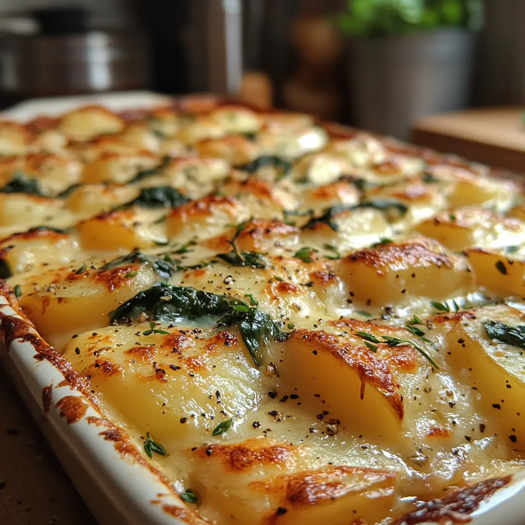 Ce gratin de pommes de terre aux épinards et au fromage de chèvre est un plat réconfortant et délicieux, parfait pour toutes les occasions. Il combine la douceur des pommes de terre avec la richesse du fromage de chèvre, le tout baigné dans une crème onctueuse et savoureuse. Ce plat est idéal pour un repas familial, une soirée entre amis ou même un dîner festif. Facile à préparer, il satisfera les gourmands à coup sûr !