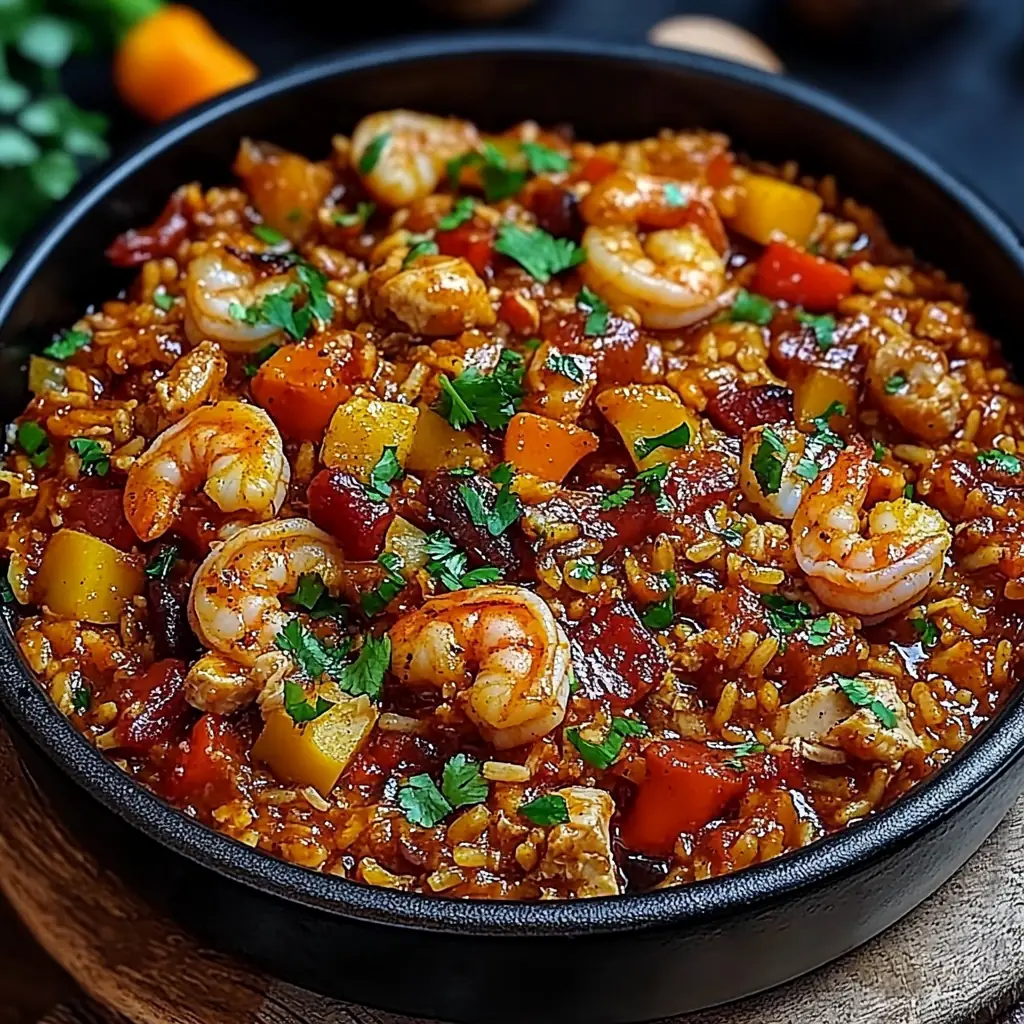 Grâce à la présence du poulet, des crevettes et du riz, cette recette vous offre un bon apport en énergie. Les épices cajun stimulent la digestion, et le poivron rouge ajoute des antioxydants et de la vitamine C. Ce plat est idéal pour un déjeuner consistant ou un dîner convivial, sans excès.