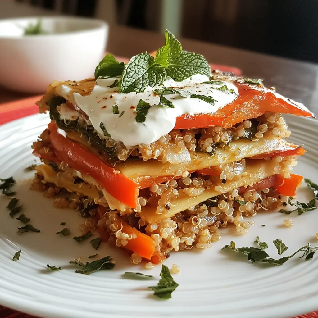 Lasagnes Froides de Poivrons, Quinoa & Sauce Yaourt-Menthe