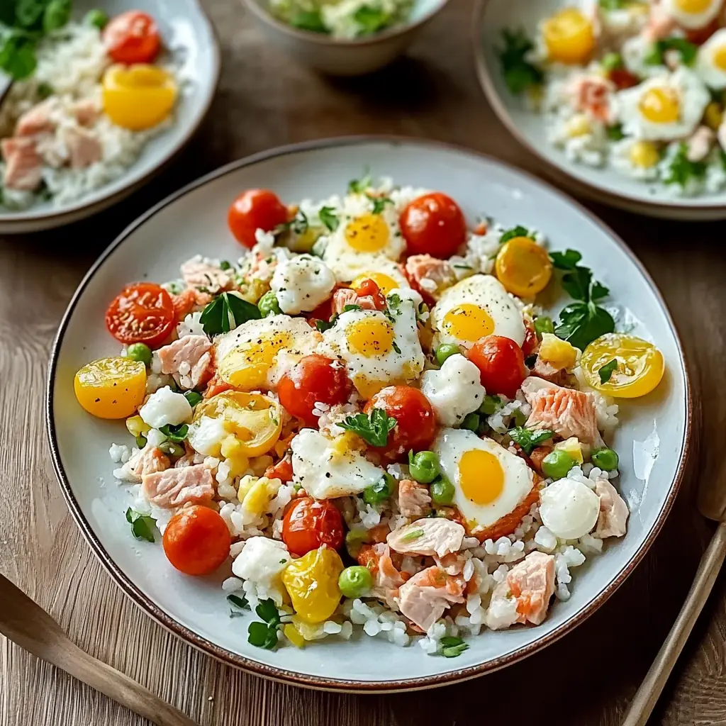Cette salade de riz au thon, maïs et tomates est un repas simple, frais et complet, idéal pour les déjeuners d’été ou les pique-niques. Elle combine la tendresse du riz, la richesse du thon, la douceur du maïs et la fraîcheur des tomates, le tout relevé par une vinaigrette légère au vinaigre de cidre. Pratique et économique, elle séduit aussi bien les enfants que les adultes et se prépare en un rien de temps.