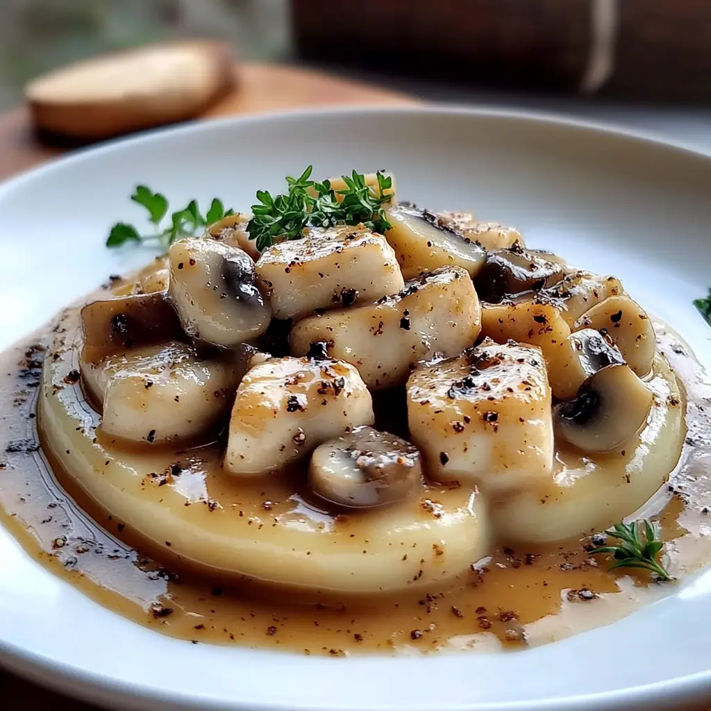 Bien sûr. Pour une version végétarienne, vous pouvez utiliser des morceaux de tofu grillé, du tempeh, ou même des pois chiches sautés. Les champignons apportant déjà une belle richesse en goût, ces alternatives fonctionneront parfaitement avec la sauce crémeuse.