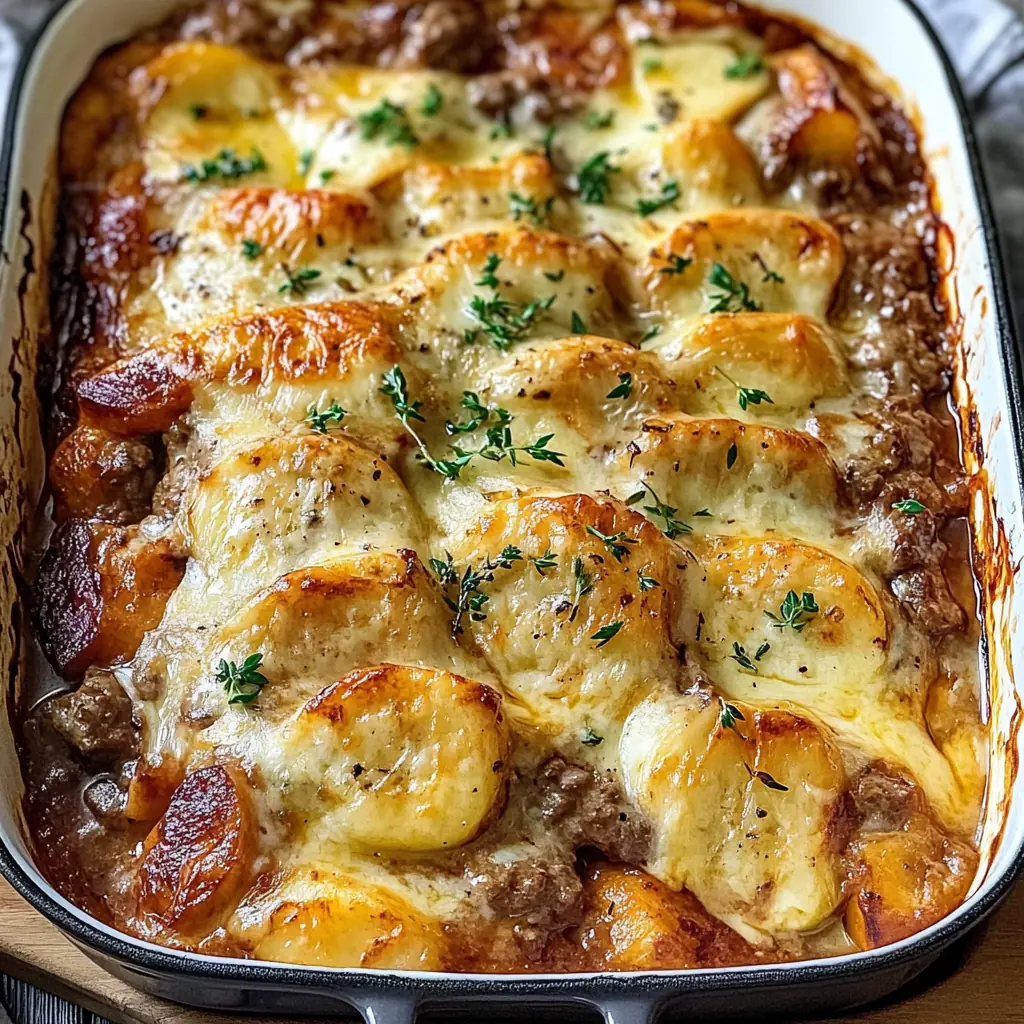 Ce plat sort du four avec une texture parfaite : le fromage fondu, les pommes de terre tendres et la sauce riche forment une combinaison délicieuse. Il se déguste chaud, accompagné d’une salade verte ou de quelques légumes vapeur.