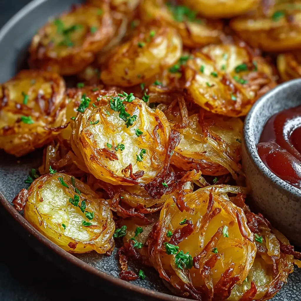 Ces pommes de terre croustillantes au four avec oignons et bacon de dinde sont un accompagnement simple mais irrésistible. Les pommes de terre rouges deviennent dorées et croustillantes, tandis que l’oignon et le bacon de dinde apportent une saveur riche et gourmande. Servies chaudes, elles sont parfaites pour un repas familial ou une grande occasion.