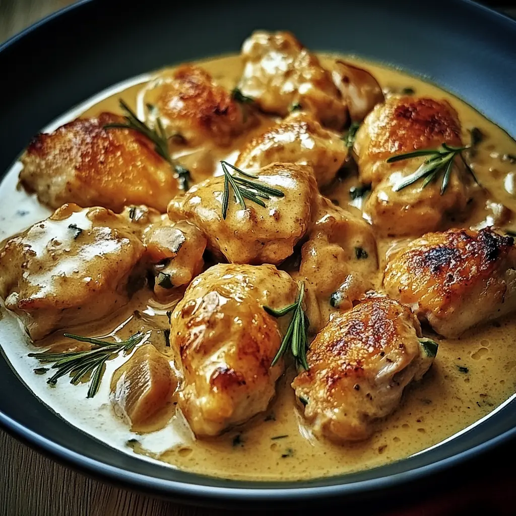 Servez votre poulet bien chaud avec du riz, des pâtes ou même une purée maison pour profiter pleinement de cette sauce crémeuse et savoureuse.