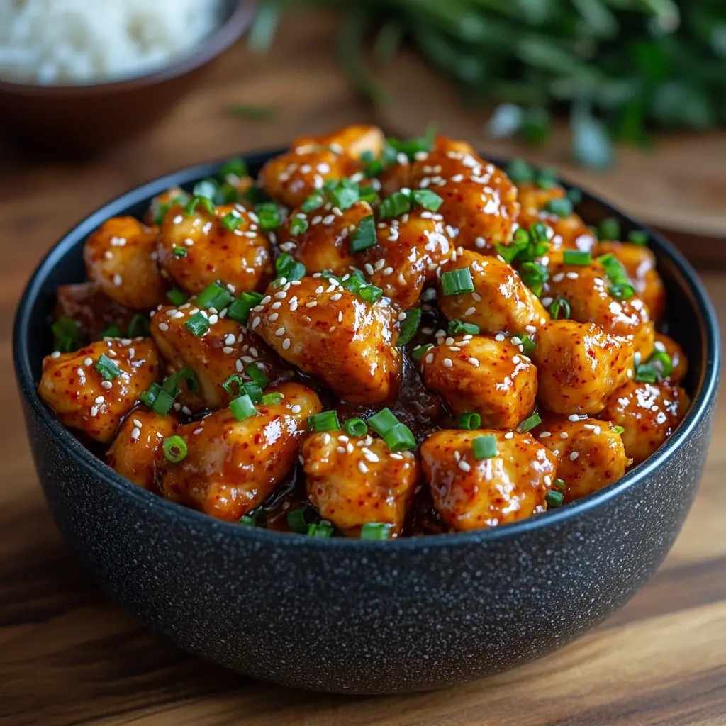 Je suis ravi de vous présenter cette recette de poulet de feu coréen, le Buldak, un plat épicé qui ravira vos papilles avec sa combinaison parfaite de saveurs chaudes et intenses. Avec un mélange de gochujang, gochugaru, et une touche de miel, ce poulet épicé est à la fois savoureux et réconfortant. Parfait pour ceux qui aiment la cuisine coréenne et les plats relevés, il est également idéal pour un dîner entre amis ou en famille. Le fromage fondant sur le dessus et la garniture de graines de sésame et d’oignons verts ajoutent une touche de gourmandise irrésistible.