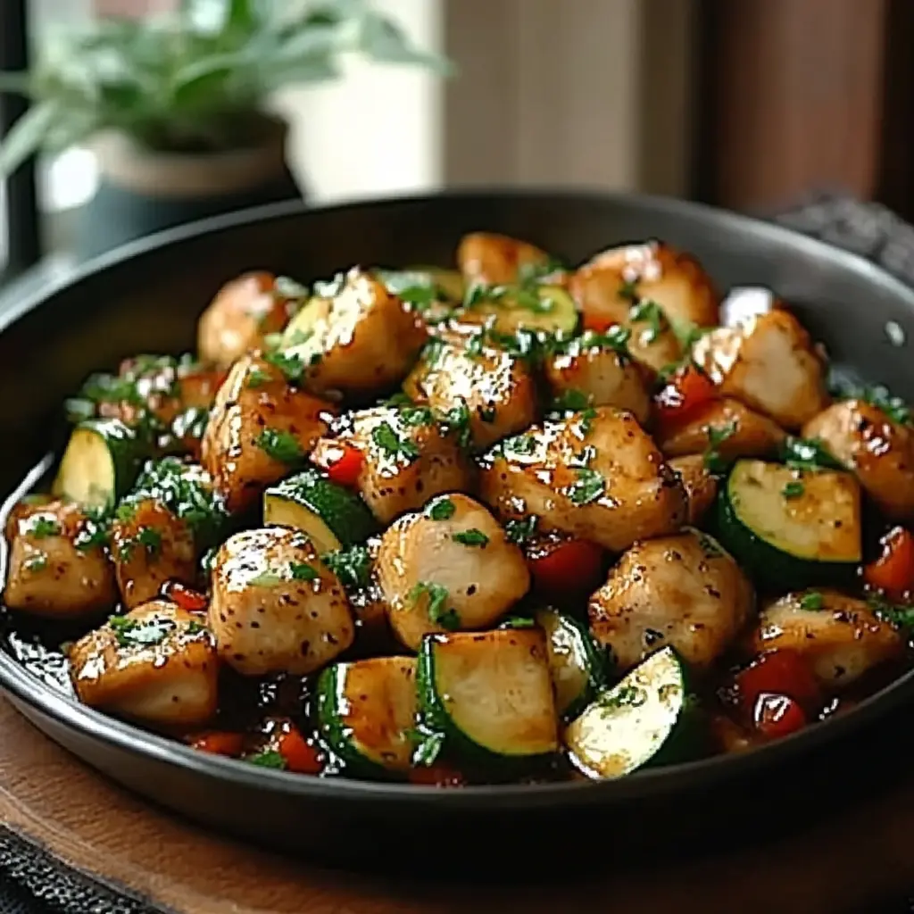 • Servez chaud et savourez ce délicieux sauté de poulet et courgettes à la sauce soja.