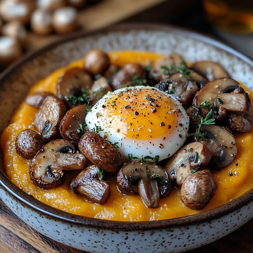 Surveillez bien chaque étape pour éviter une cuisson excessive. La purée de butternut doit être bien lisse et homogène, les champignons bien dorés mais fermes, et l’œuf poché doit avoir une texture crémeuse.