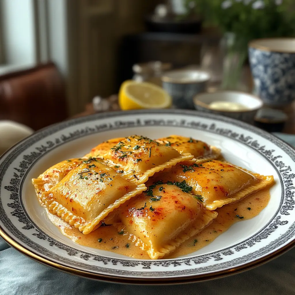 Je trouve qu’il n’y a rien de plus satisfaisant que de façonner soi-même ses raviolis. Le geste de plier la pâte, de sceller la farce à l’intérieur, c’est presque méditatif. Et une fois qu’on les plonge dans l’eau bouillante, on sent déjà que le plat prendra vie. En quelques minutes, les raviolis gonflent, deviennent tendres, et attendent patiemment leur bain doré de sauce crémeuse. Ce plat n’est pas seulement un repas, c’est une célébration. Que ce soit pour un dîner en amoureux, une occasion spéciale, ou simplement pour redonner du sens à un repas de semaine, ces raviolis sont toujours une bonne idée.