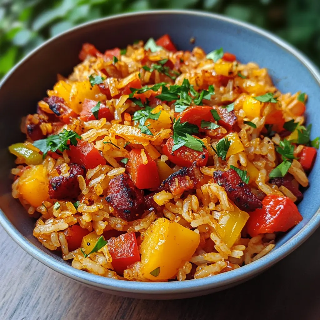 Ces poivrons au riz et au chorizo végétal sont un plat coloré, réconfortant et facile à préparer, idéal pour toutes les saisons. Il combine des rondelles de chorizo végétal dorées, des poivrons tendres, du riz basmati moelleux et un assaisonnement bien équilibré à base de paprika, d’ail et d’oignon. Garni de coriandre fraîche, ce plat offre une harmonie parfaite de saveurs et de textures. Que ce soit pour un repas rapide en semaine ou un déjeuner à emporter, cette recette végétale saura séduire toute la famille.