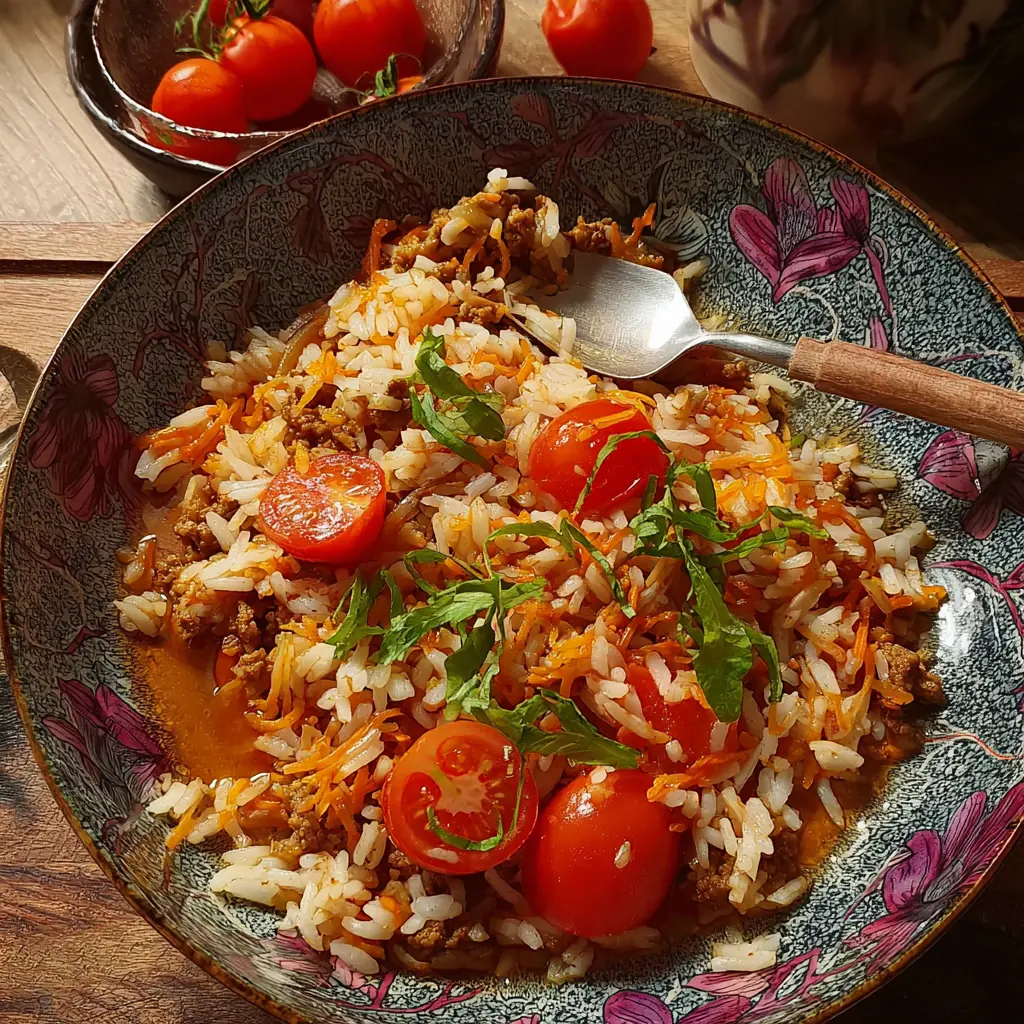 Ce riz rapide et savoureux est une recette express qui combine riz moelleux, viande hachée parfumée et tomates fondantes. Cuisiné en une seule poêle, il offre un repas complet et réconfortant en seulement 30 minutes. Idéal pour les soirs de semaine chargés, ce plat familial séduit par sa simplicité et son goût généreux.