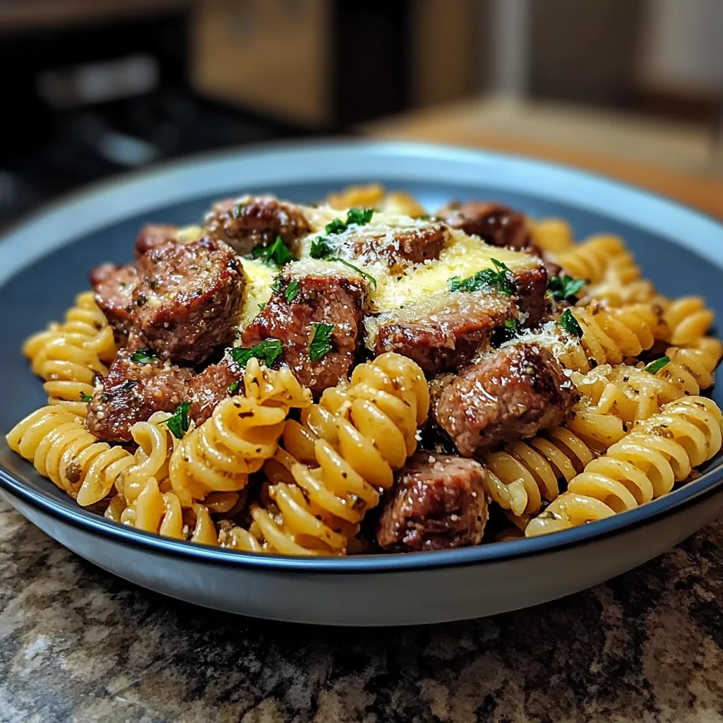 Rotini au Bœuf à la Sauce Ail-Parmesan