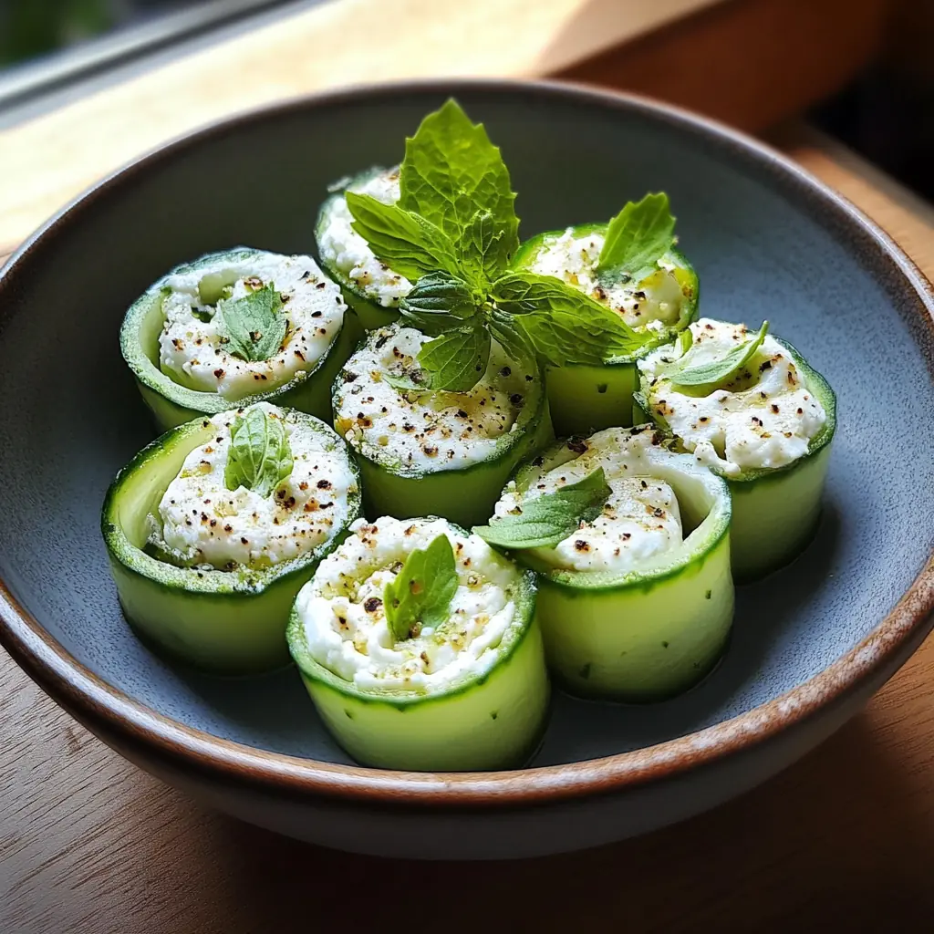 Roulés de Concombre au Fromage de Chèvre Frais et Pesto de Basilic Mentholé