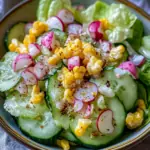 Ce que j’aime particulièrement, c’est la façon dont les couleurs se marient : le jaune du maïs, le vert du concombre, le blanc du chou-fleur et le rouge des poivrons créent un contraste appétissant dans l’assiette. Dès que je la prépare, tout le monde me demande la recette, car elle est à la fois belle et savoureuse. Elle peut se servir en entrée légère ou en accompagnement d’un plat principal, et elle est parfaite pour un pique-nique, un barbecue ou un repas en famille.