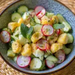 Ce que j’aime particulièrement, c’est la polyvalence de cette recette. Elle est idéale comme entrée fraîche lors d’un déjeuner en terrasse, mais elle peut aussi accompagner à merveille un plat principal léger. En plus, elle est prête en quelques minutes seulement, sans cuisson, ce qui en fait une option parfaite pour les journées chargées ou les repas improvisés. Que vous soyez un cuisinier débutant ou expérimenté, cette salade est facile à préparer et garantit un effet « wow » immédiat. C’est une invitation à savourer l’été dans toute sa splendeur, un plat qui met en valeur la simplicité et la qualité des ingrédients frais.