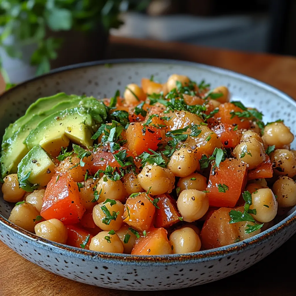 Cette salade de pois chiches et avocat est une combinaison parfaite de fraîcheur et de saveurs. Facile à préparer, elle est idéale pour une entrée légère ou un accompagnement savoureux lors de vos repas. Avec des pois chiches croquants, de l’avocat crémeux, des légumes frais et une vinaigrette délicieuse, chaque bouchée est une explosion de fraîcheur et de bienfaits.