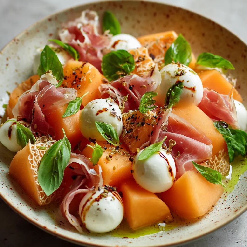 Cette recette réussit à séduire parce qu’elle équilibre parfaitement les saveurs. Le melon apporte la douceur, le jambon de poulet cru l’intensité salée, la mozzarella la rondeur et le basilic la fraîcheur. De plus, sa légèreté la rend adaptée aussi bien en entrée qu’en plat principal léger.