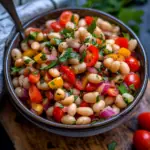 Lorsque je prépare cette salade turque aux haricots blancs, je fais toujours attention au temps de repos. Même si elle peut être servie immédiatement, je remarque souvent qu’un court repos améliore nettement la texture et la saveur. En effet, les ingrédients ont le temps de s’imprégner du sumac, du citron et de l’huile d’olive, ce qui crée un mélange encore plus harmonieux. Cependant, il est important de ne pas laisser reposer trop longtemps avant de servir pour éviter que les tomates ne rendent trop de jus.