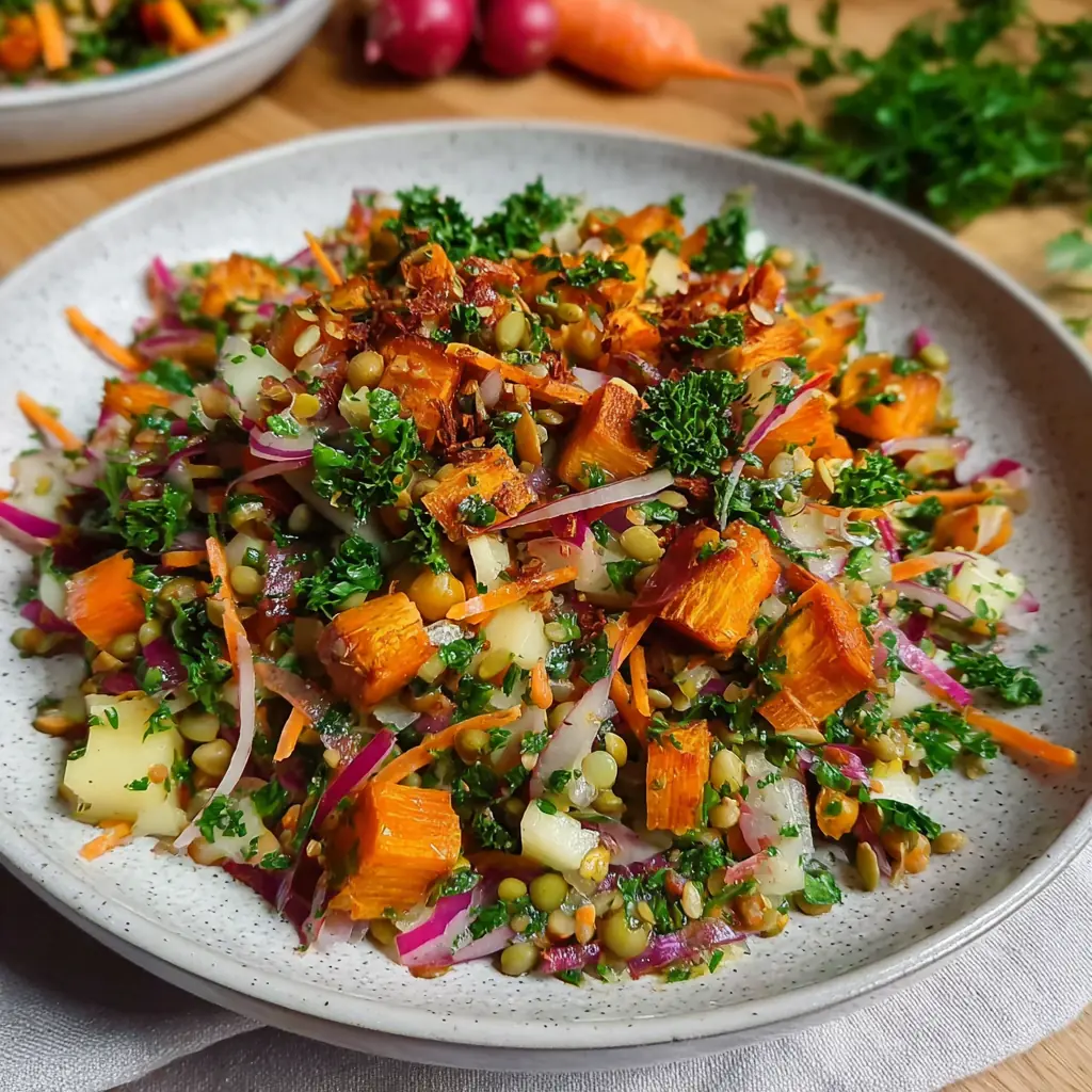 Laissez-moi vous raconter comment j’ai découvert cette salade végétarienne fraîche et croquante. Depuis longtemps, je cherchais une recette qui soit à la fois légère, nutritive et pleine de saveurs contrastées. Un jour, en expérimentant avec des légumes de saison, des fruits et des légumineuses, j’ai créé cette combinaison parfaite de carottes croquantes, de pommes juteuses et de lentilles tendres.