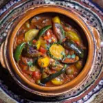 Je me souviens encore de la première fois que j’ai préparé ce tajine végétarien coloré. L’arôme des épices méditerranéennes qui se mêlait à celui des légumes rôtis emplissait ma cuisine d’une chaleur envoûtante. J’adore cette recette, car elle incarne tout ce que j’aime dans la cuisine marocaine : des saveurs franches, des couleurs éclatantes et une générosité qui invite au partage. Chaque bouchée est un équilibre parfait entre douceur, fraîcheur et profondeur aromatique.