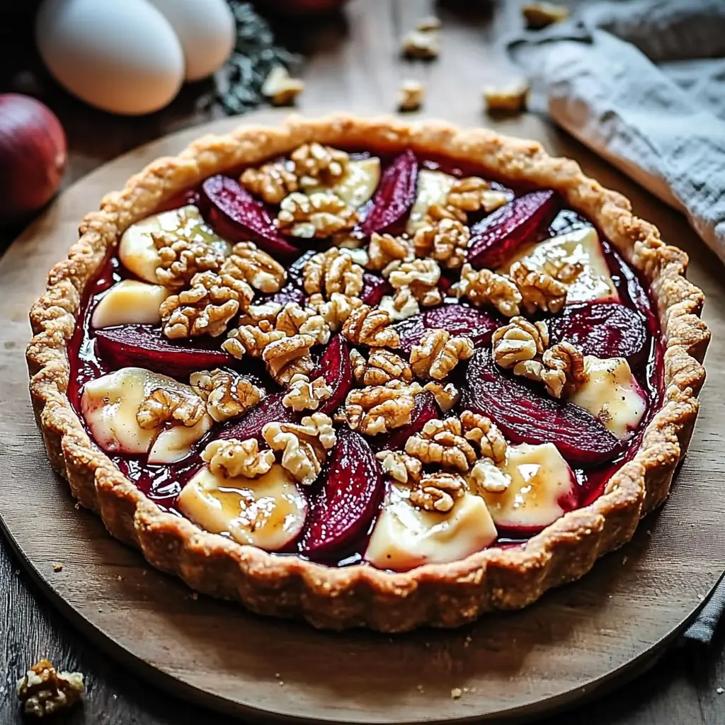 Je suis ravi de vous présenter ma recette préférée de saison : la tarte aux betteraves caramélisées, fromage de chèvre et noix. C’est une véritable explosion de saveurs automnales qui ravira vos papilles à chaque bouchée. J’adore préparer ce plat, car il combine la douceur des betteraves avec la texture fondante du fromage de chèvre, rehaussée par le croquant des noix. Le miel ajoute une note sucrée subtile qui équilibre parfaitement l’ensemble.