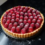 J’aime particulièrement cette recette parce qu’elle me rappelle les tartes que l’on trouve dans les boulangeries françaises traditionnelles : une pâte sablée dorée, légèrement croquante, garnie d’une crème vanillée légère et de framboises juteuses. En la préparant à la maison, on contrôle chaque ingrédient, ce qui rend le résultat encore plus savoureux et authentique.