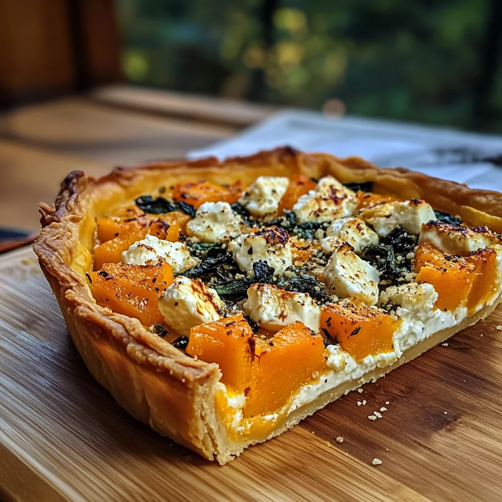 Tarte Butternut, Épinards, Feta et Amandes Grillées