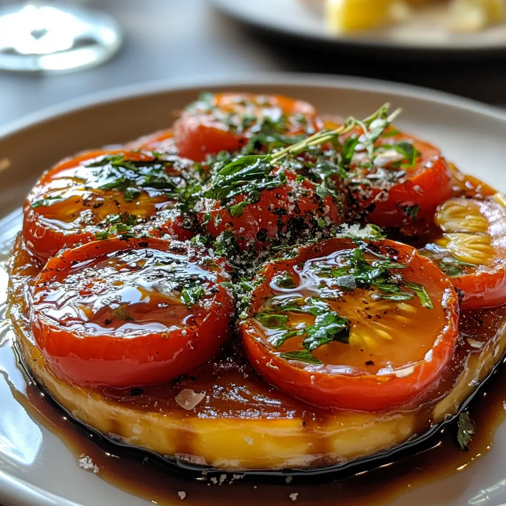 Tarte Tatin de Tomates Rôties, Vinaigre Balsamique, Basilic Frais et Parmesan