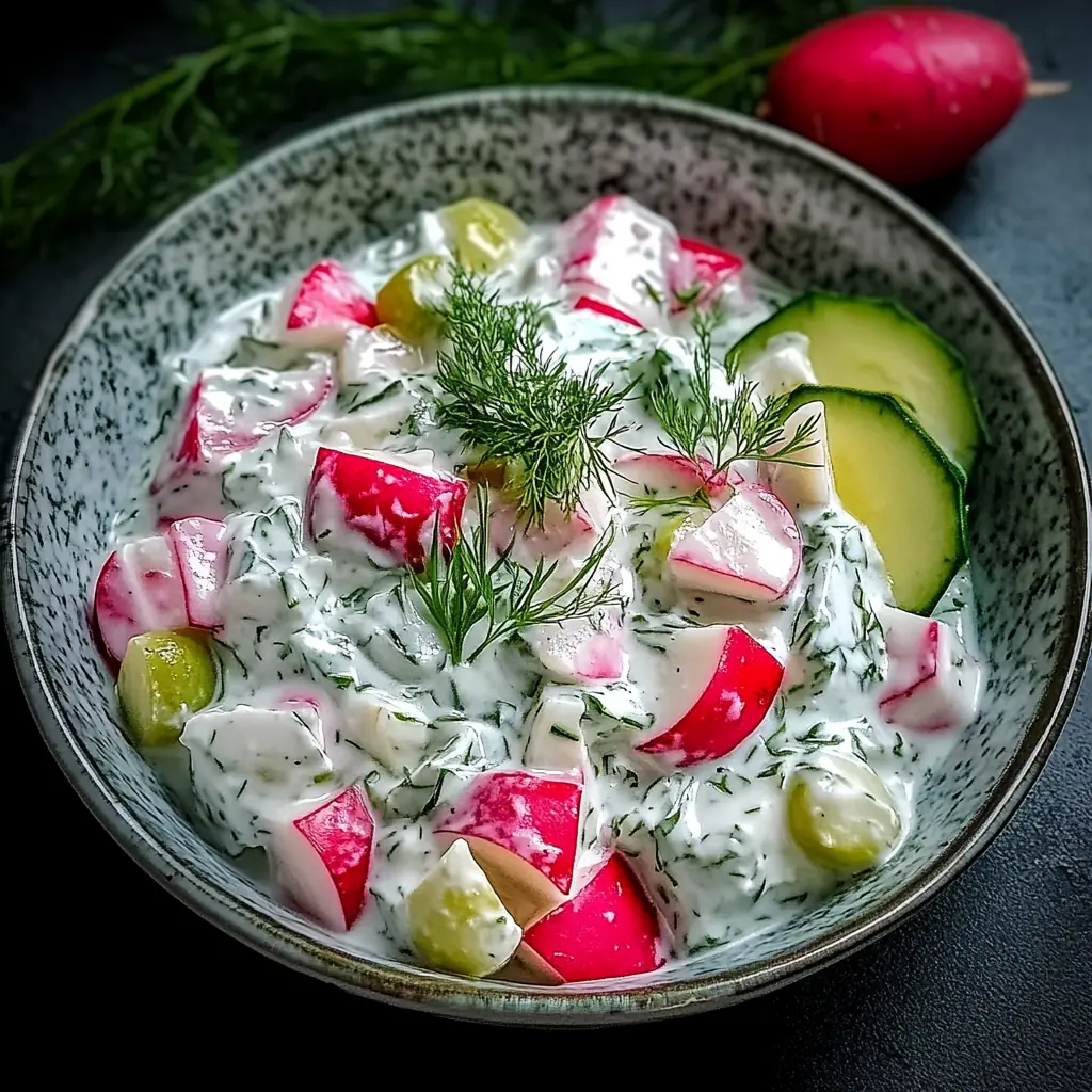 Si vous aimez les plats frais et pleins de caractère, ce tzatziki aux radis et herbes deviendra rapidement un incontournable dans votre cuisine. Il est non seulement délicieux, mais aussi visuellement attrayant et nutritif, parfait pour ceux qui cherchent à allier santé et plaisir gustatif.