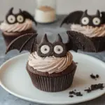 Ces Vegan Oreo Bat Cupcakes sont des petits gâteaux effrayants et amusants, parfaits pour Halloween. Moelleux, chocolatés et 100 % végétaliens, ils allient la richesse du cacao à la douceur d’un glaçage onctueux aux Oreo. Faciles à préparer et adorables à décorer, ils plairont autant aux enfants qu’aux adultes.